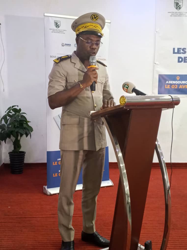 Représentant le préfet de région, préfet du département d'Abengourou, N'Cho David, Secrétaire Général de préfecture d'Abengourou a fait savoir que l'eau est au centre de nos vies. Pourtant elle rencontre des problèmes. Ainsi donc cet atelier est une opportunité unique de s'approprier ce Code pour une gestion efficiente de l'eau. Cet atelier regroupe les Ministères, les collectivités, les ONG et bien d'autres organisations de la société civile. Le Ministre Gouverneur du District Autonome de la Comoé, Pascal Kouakou Abinan est représenté par son vice-gouverneur, Koua Amian.