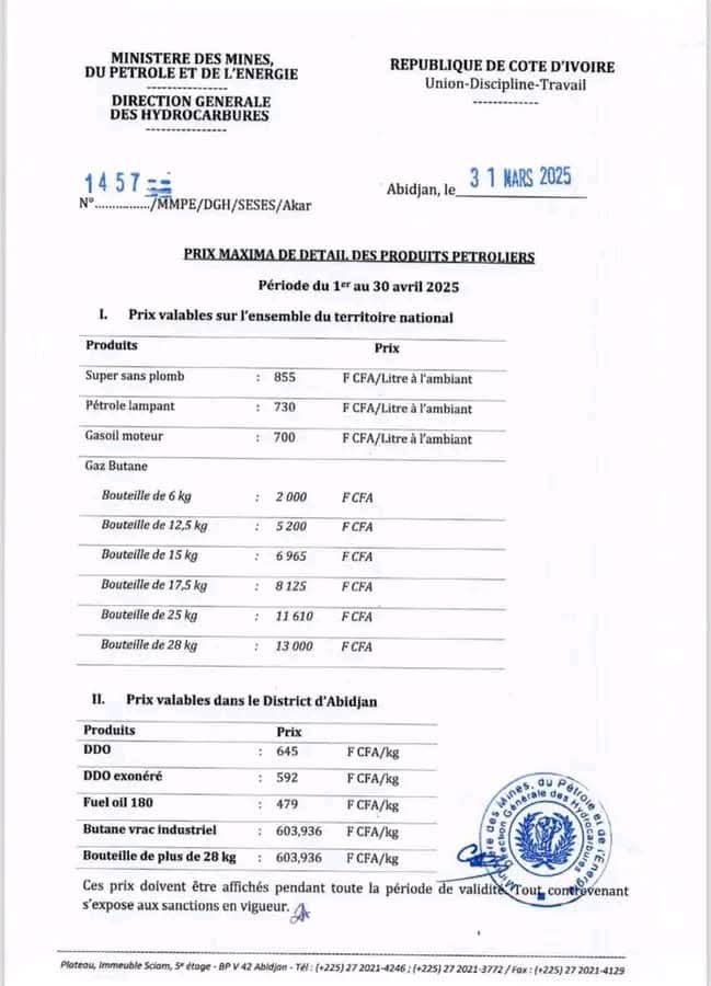 Le ministère des Mines, du pétrole et de l'énergie a publié les coûts des hydrocarbures pour le mois d'avril 2025. L'on constate une légère baisse au niveau du carburant.