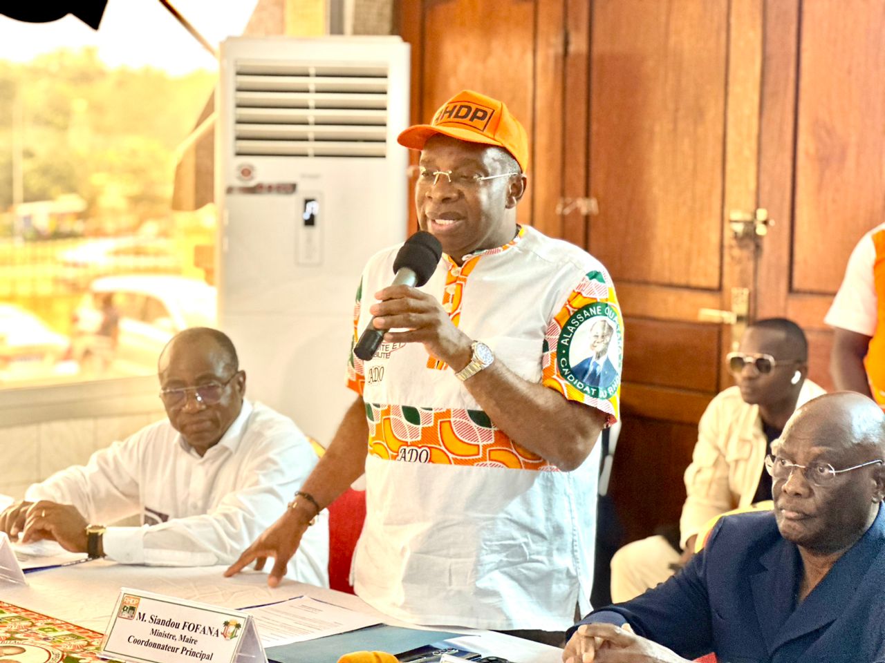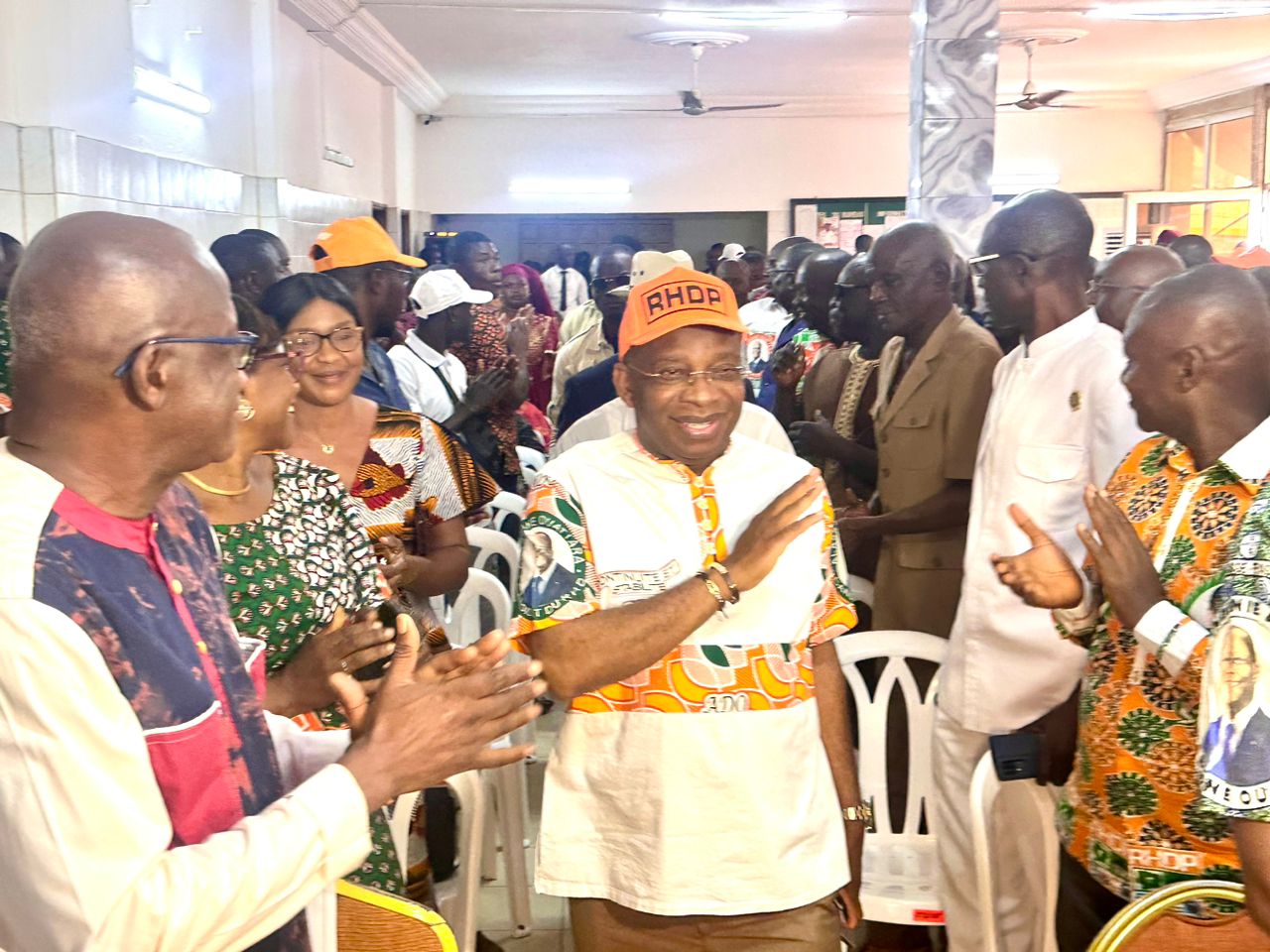 Recensons tous les problèmes d’électricité, les pertes d’énergie, problèmes d’alimentation en eau potable, problèmes de routes. Continuons d’être exemplaires. Suivons le Rhdp. Nous, où nous sommes assis, de ce qu’on voit, et de ce qu’on entend, ce sera difficile que ceux qu’on voit venir là, nous déloger. Mais pour qu’on ne soit pas déraciné, il faut qu’on se prépare. Et, pour se préparer, il est annoncé en ce moment l’enrôlement des électeurs. C’est moins d’un mois, Il faut qu’on on se prépare. Il faut éviter de prendre tout venant. Parce que celui qui vient se présenter à nous qu’on ne connait pas, il peut ne pas être forcément notre électeur. Il peut venir se faire enrôler et voter notre adversaire. Recensez ceux qui sont de notre bord. C’est à cette seule condition que nous aurons la majorité.