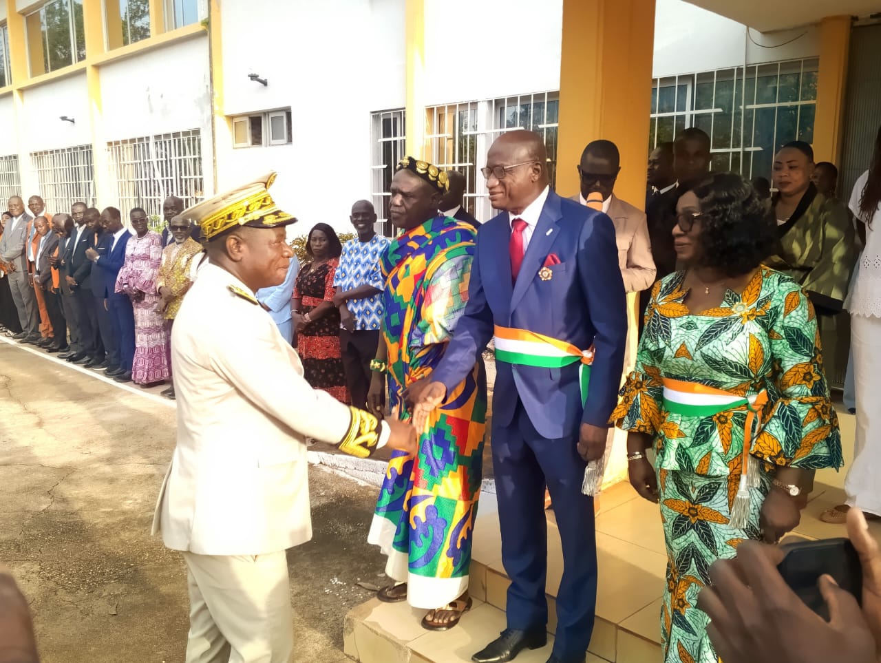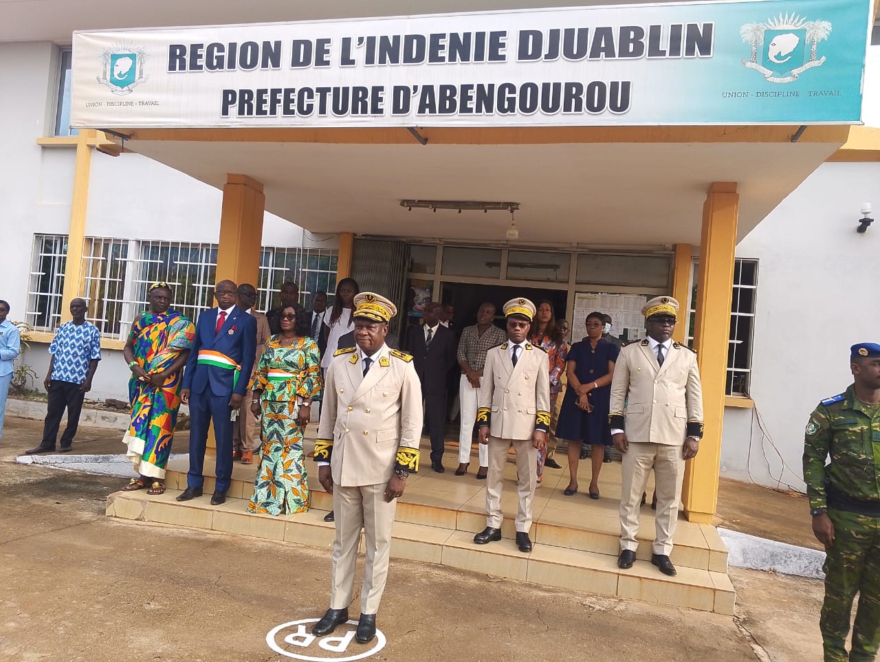 La traditionnelle cérémonie de salut aux couleurs a eu lieu ce lundi 02 mars 2026, à la Préfecture de Région d’Abengourou, sous la présidence du Préfet de Région, Préfet du Département , Kouadio Kouassi Eugène, en présence des élus, autorités administratives et politiques, directeurs et chefs de services ainsi que des chefs coutumiers.