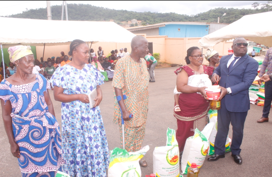 Ils ont reçu chacun 1 sac de riz de 25 kg, une grande boîte de tomate concentrée de 2kg et une bouteille d’huile de 3 litres. Et une enveloppe. Des vivres et non vivres de la part du ministre gouverneur, Abinan Pascal Kouakou, d'une valeur de 5 millions FCFA. Représentant le Ministre Gouverneur à cette activité, le Vice-Gouverneur, Koua Amian a affirmé que cette initiative traduit la volonté du Ministre-Gouverneur, Pascal Kouakou Abinan, de manifester sa solidarité envers les personnes vulnérables du District.