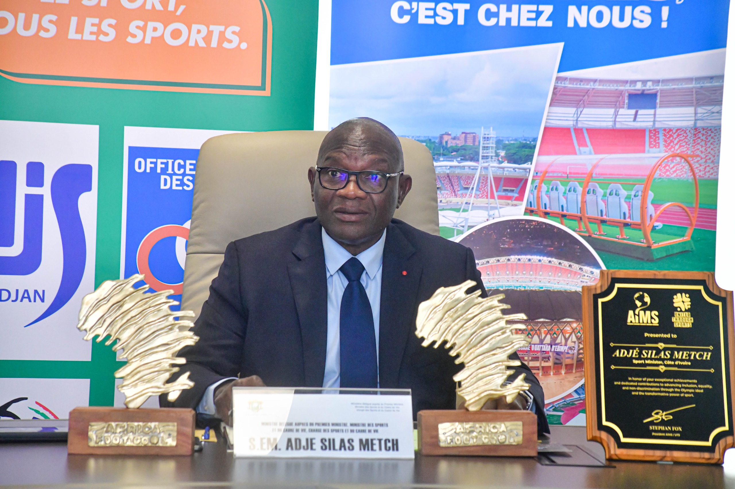 1- Marquant l'investissement de la Côte d’Ivoire et l'engagement personnel de Monsieur le Ministre Adjé Silas METCH pour les actions de développement du sport à travers l'idéal olympique. (Remis par la Convention internationale du sport africain ( Cisa) .