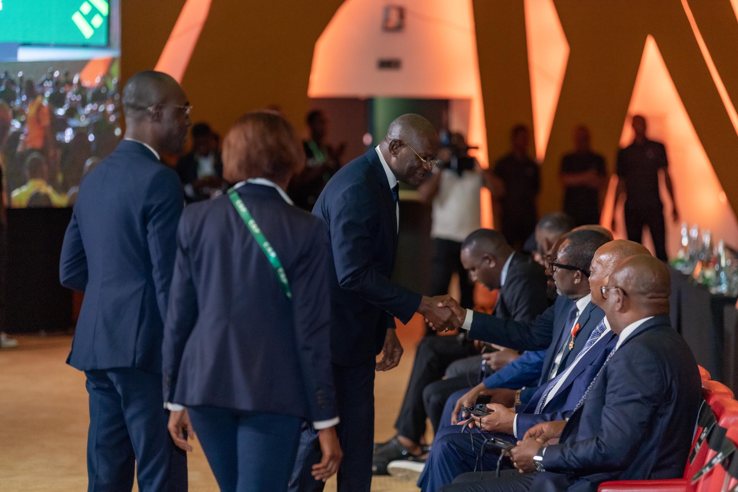 Nous sommes également honorés de la présence de tous ces présidents de fédérations nationales de football, de la participation des Ambassadeurs de la Caf, des légendes du football africain et de tous les membres de la Confédération africaine de football, les sponsors, les partenaires ainsi que les journalistes sportifs africains qui sont à la tâche tous les jours, en tout lieu et tout le temps, pour le développement du football sur le continent.