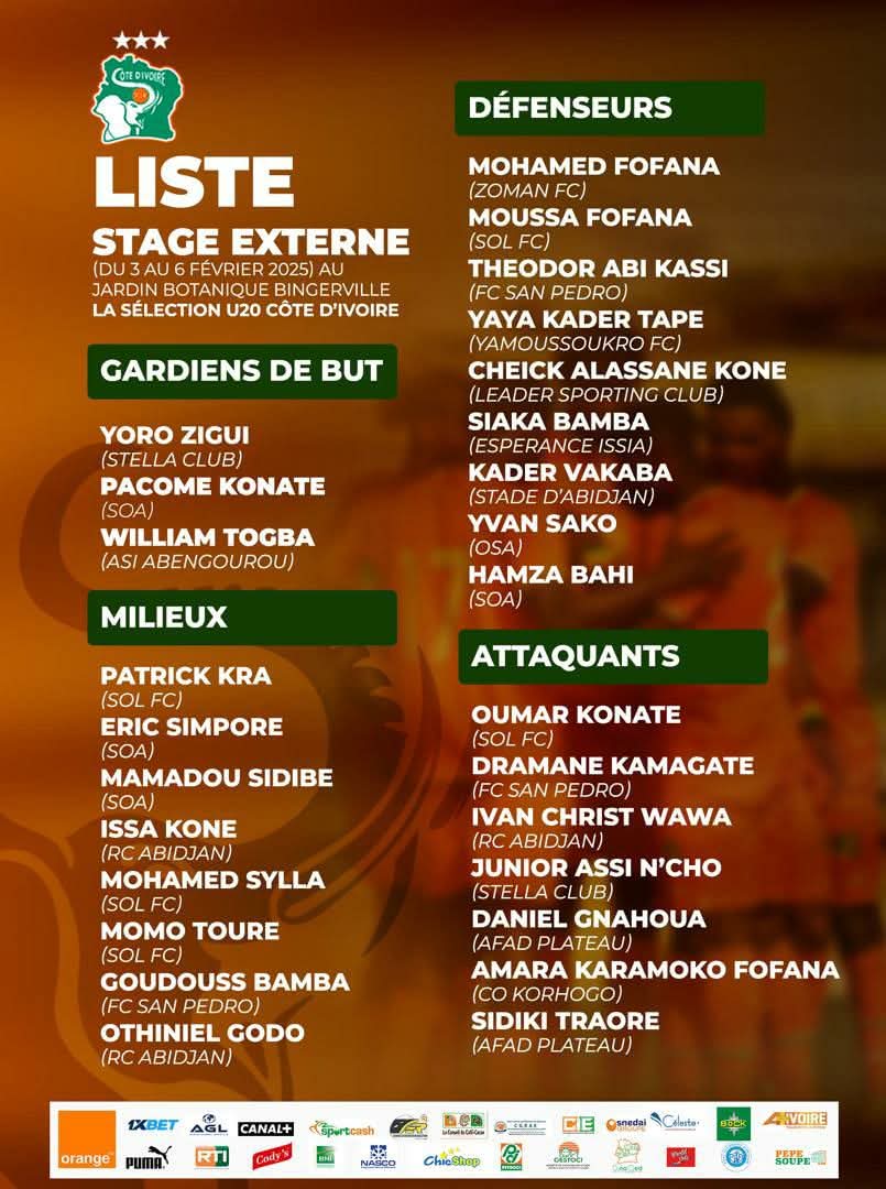 Le nouveau Sélectionneur des Éléphants U20, Younès Zerdouk organise le premier stage externe de préparation pour la CAN 2025, du 3 au 6 février 2025 au jardin botanique à Bingerville.