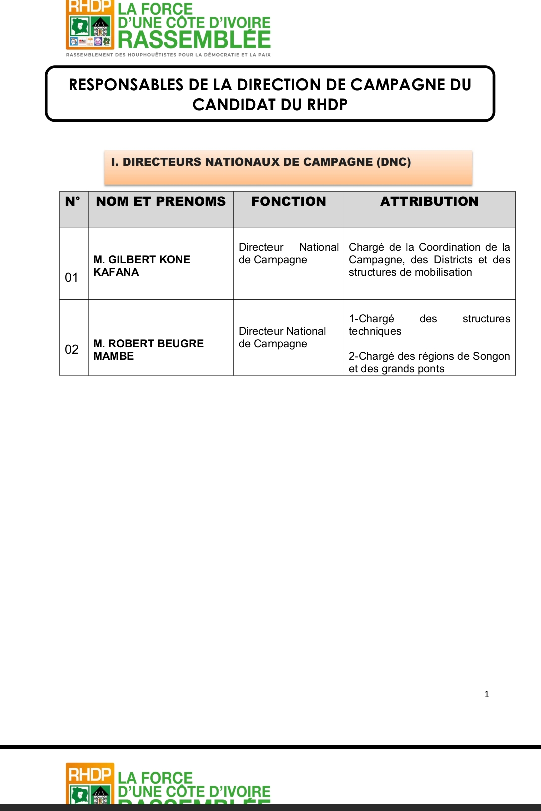 Candidat à sa propre succession à la tête de la Côte d'Ivoire, Alassane Ouattara a dévoilé son équipe de campagne au niveau du RHDP.